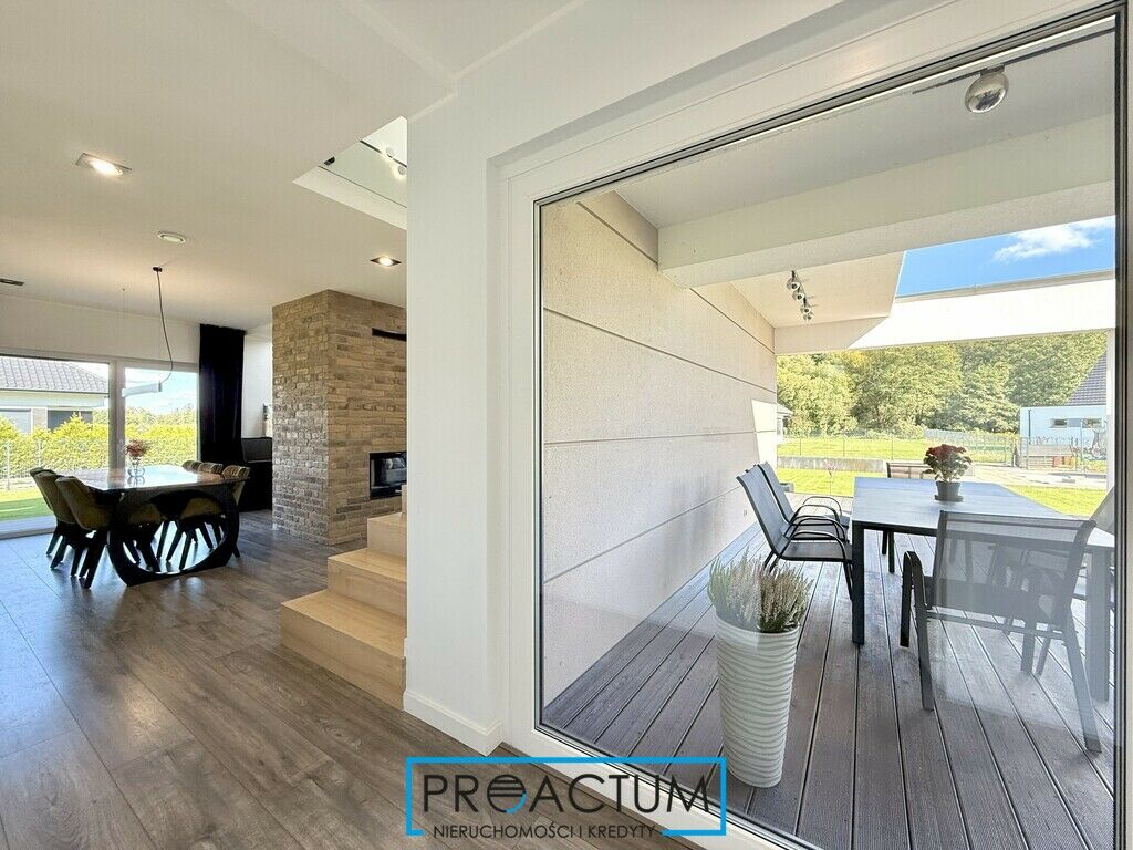 Państwo podwórze i taras dzięki dużym przeszkleniom. Przechodząc